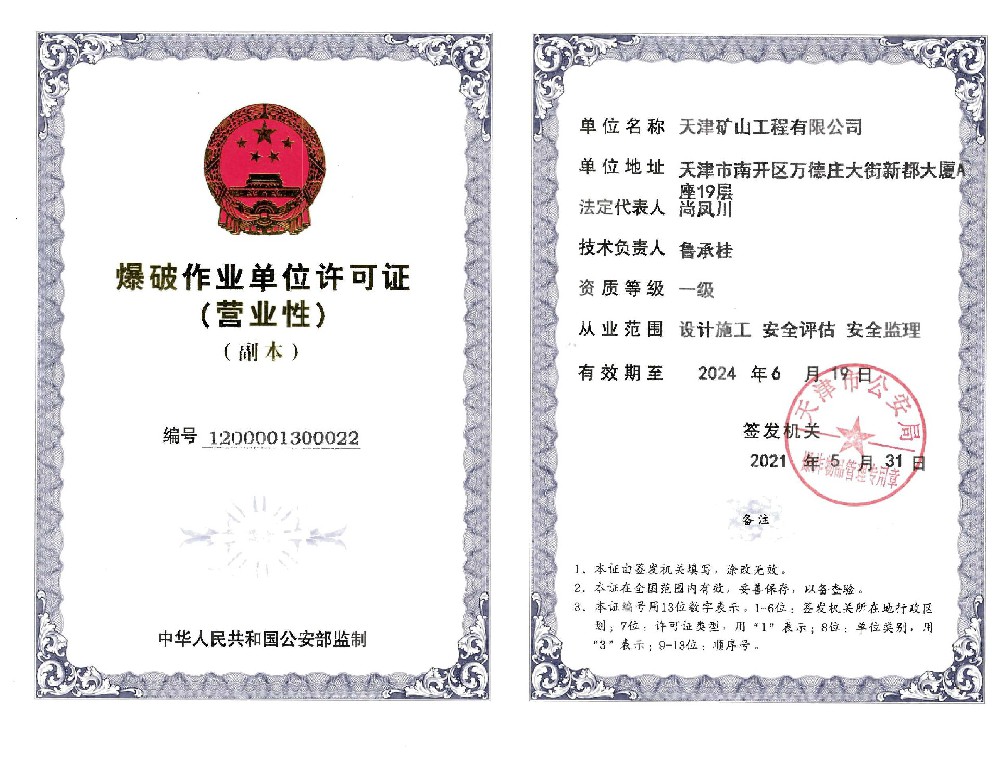 爆破作業(yè)單位許可證(營業(yè)性)