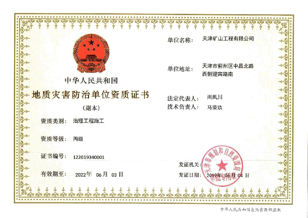 地質(zhì)災(zāi)害治理工程施工資質(zhì)證書